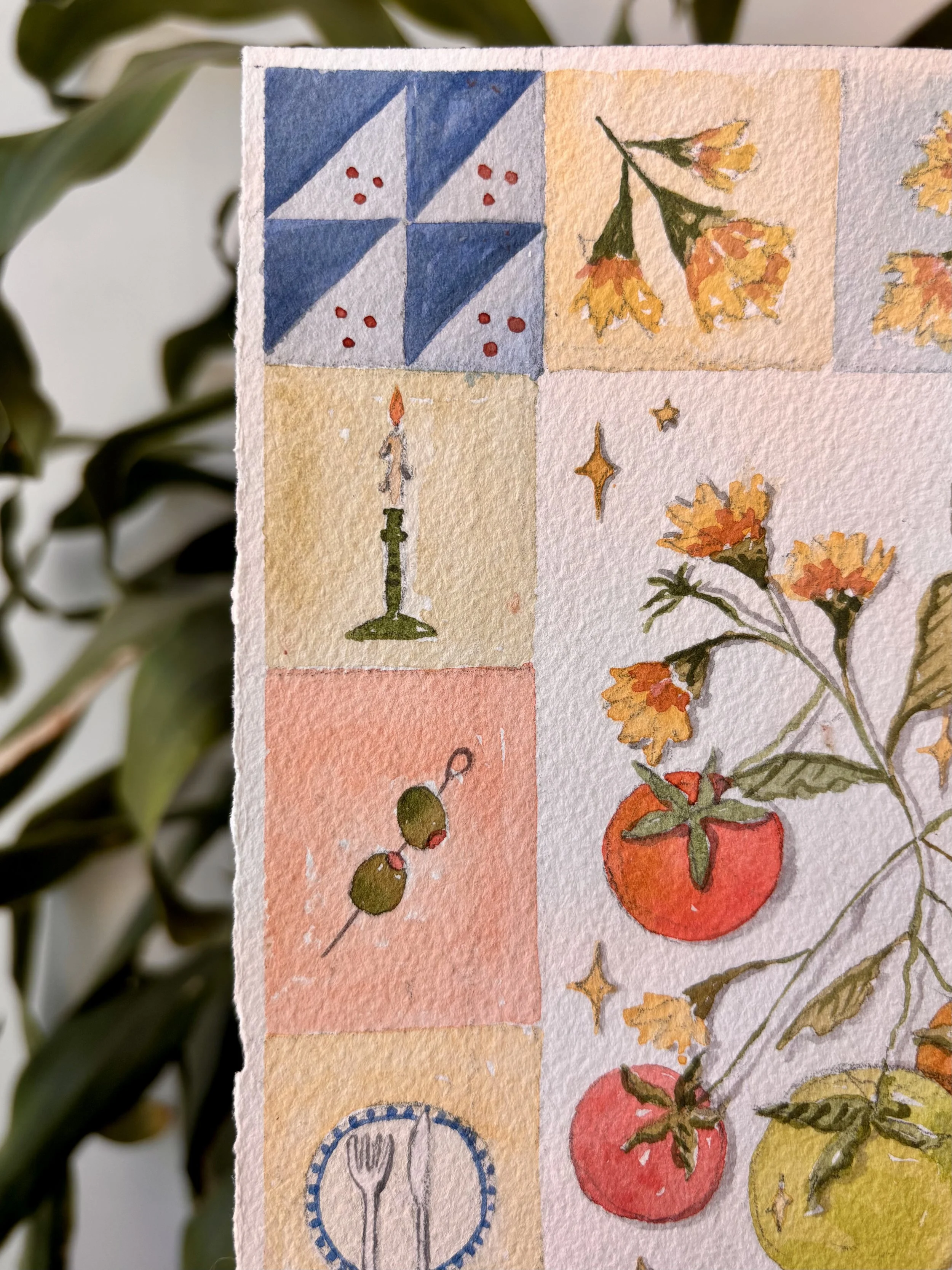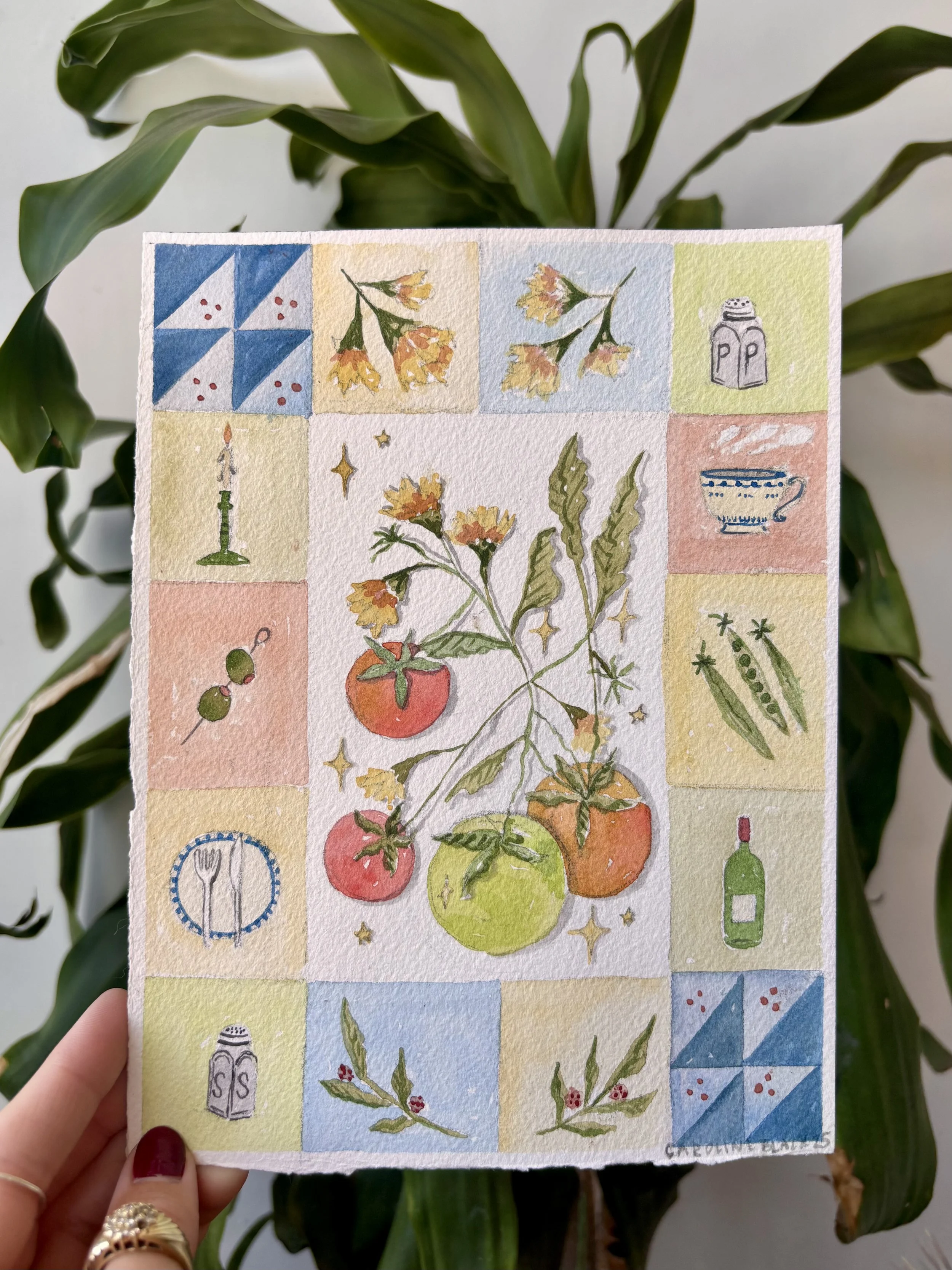 Shop Categories: All Gift Cards Paint Your Own Originals Tomato Art Custom Portraits All | Gift Cards | Paint Your Own | Originals | Tomato Art | Custom Portraits | Hand Painted Olive Branch Platter - Collaboration with Early Bird Acres $120.00 Hand-Painted Swallow Mug and Spoon - Collaboration with Early Bird Acres $50.00 Hand-Painted Pomegranate Plate - Collaboration with Early Bird Acres $50.00 Hand-Painted Olive Branch Bowl - Collaboration with Early Bird Acres $50.00 Hand-Painted Pomegranate Bowl - Collaboration with Early Bird Acres $50.00 Watercolor Class Certificate from $50.00 "Birch Haven" - 4"x6" mixed media original $40.00 Sold out "Mountain Town Fall" 8"x10" mixed media original $100.00 Sold out Watercolor Travel Kit $170.00 Paint Your Own - Set of 8 SURPRISE Sketches $70.00 Paint Your Own - Set of 4 SURPRISE Sketches $40.00 Paint Your Own - Set of 8 Landscape Sketches $70.00 Paint Your Own - Set of 8 Fruit and Veggie Sketches $70.00 Paint Your Own - Set of 8 Floral Sketches $70.00 Paint Your Own - Set of 4 Landscape Sketches $40.00 Paint Your Own - Set of 4 Fruit and Veggie Sketches $40.00 Paint Your Own - Set of 4 Floral Sketches $40.00 "iris nouveau" 6"x8" original watercolor $70.00 Dinner-Table Tiles! - 6"x8" Original Watercolor $50.00 Sold out "Tomato Picnic" - 18"x24" original watercolor $200.00 "Very Red, Very Gingham" - original watercolor from $25.00 "Heirlooms" - original watercolor from $20.00 "Tiny Tomatoes" - Collaboration with Early Bird Acres $20.00 Sold out "Caprese Ready" - Collaboration with Early Bird Acres $40.00 Sold out "Dancing in Red" - Collaboration with Early Bird Acres $40.00 Sold out "Summer Greens" Plate - Collaboration with Early Bird Acres $35.00 Custom Floral Watercolor Portrait from $30.00 Custom House Watercolor Portrait from $100.00